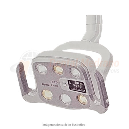 foco dental de gama alta con 6 fuentes luminicas a base de tecnologia LED, con sensor de control touch free y panel digital frontal con indicacion de valores de temperatura de color e intensidad